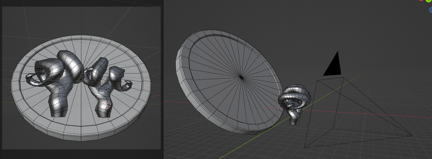 ¡Listo! Ahora deberías tener una única medalla ovalada con los objetos fusionados en bajorrelieve según la perspectiva de la cámara.