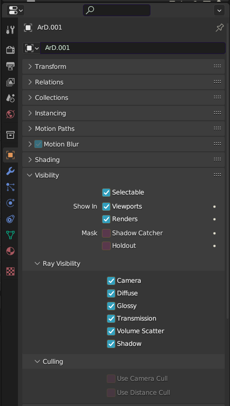En el panel de propiedades (barra lateral derecha), ve a la pestaña de Object Data (icono de triángulo) y activa la opción Viewport Display en la sección Influence dentro de Cycles Settings. Esto hará que el objeto sea visible solo en la vista de cámara.