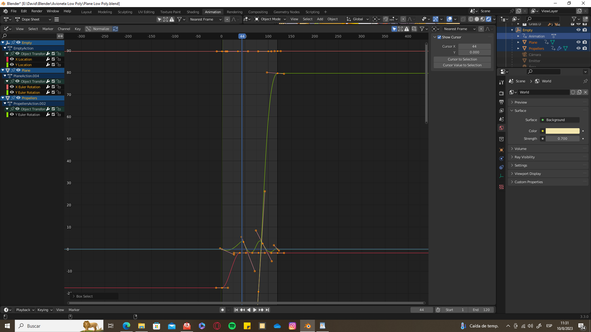 Resulta que hice una animación en Blender de un avión aterrizando y despegando, todo en un mismo lapso de tiempo a 120 fotogramas. Sin embargo, tengo un problema: mi avión tiene pequeños saltos de frames al renderizar en Cycles y no entiendo cuál es el problema.