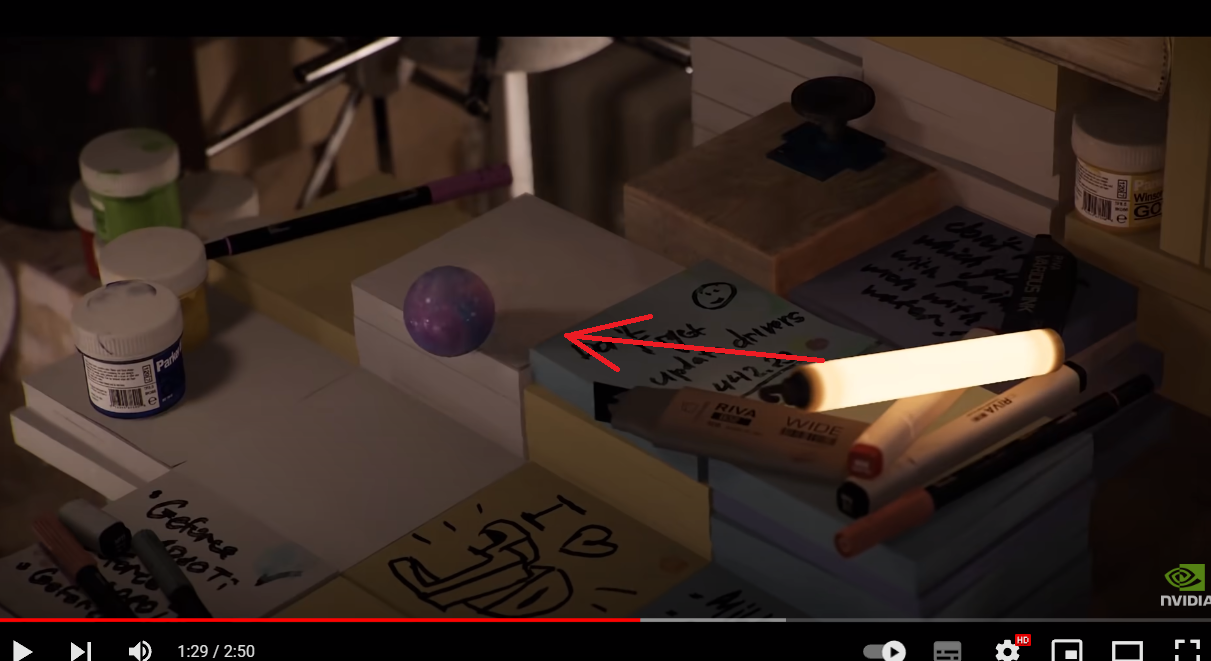 Marbles at Night es una demostración basada en la física que utiliza luces dinámicas con trazado de rayos y más de 100 millones de polígonos. Creada en NVIDIA Omniverse y ejecutándose en una sola GPU GeForce RTX 3090, el resultado final muestra numerosas fuentes de luz distintas durante la noche, donde cada canica refleja las luces de manera única, y todo esto sucede en tiempo real.
