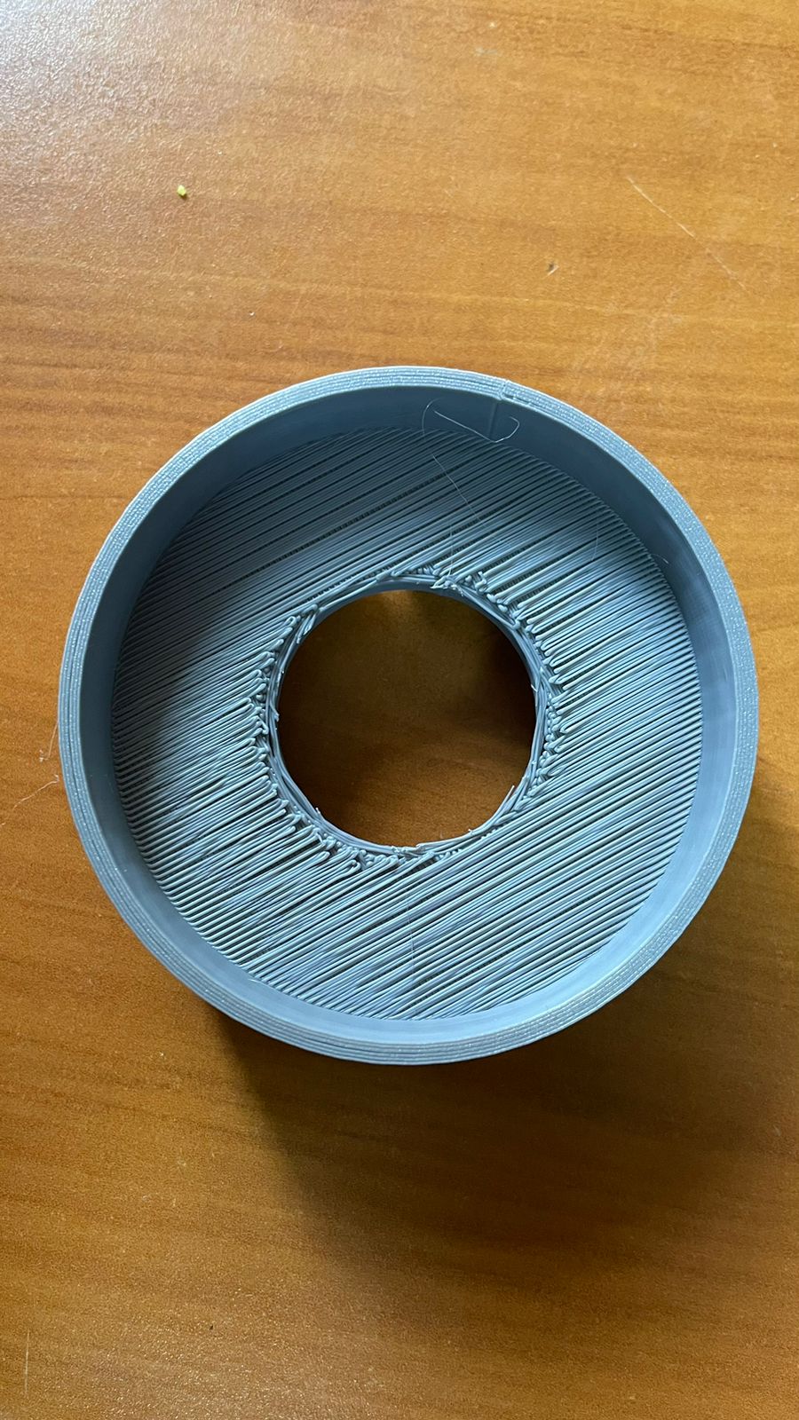 Segunda imagen, vista inferior. Se ve que esa cara ha quedado mal impresa y el círculo estaba lleno de filamento no adherido que he terminado cortando con un alicate.