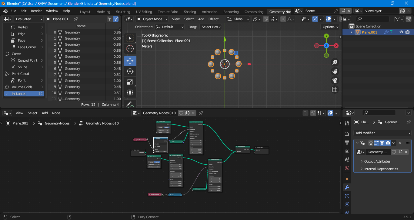 Hola. Trabajo con Blender 3.5.1 y estoy iniciándome en Geometry Nodes.