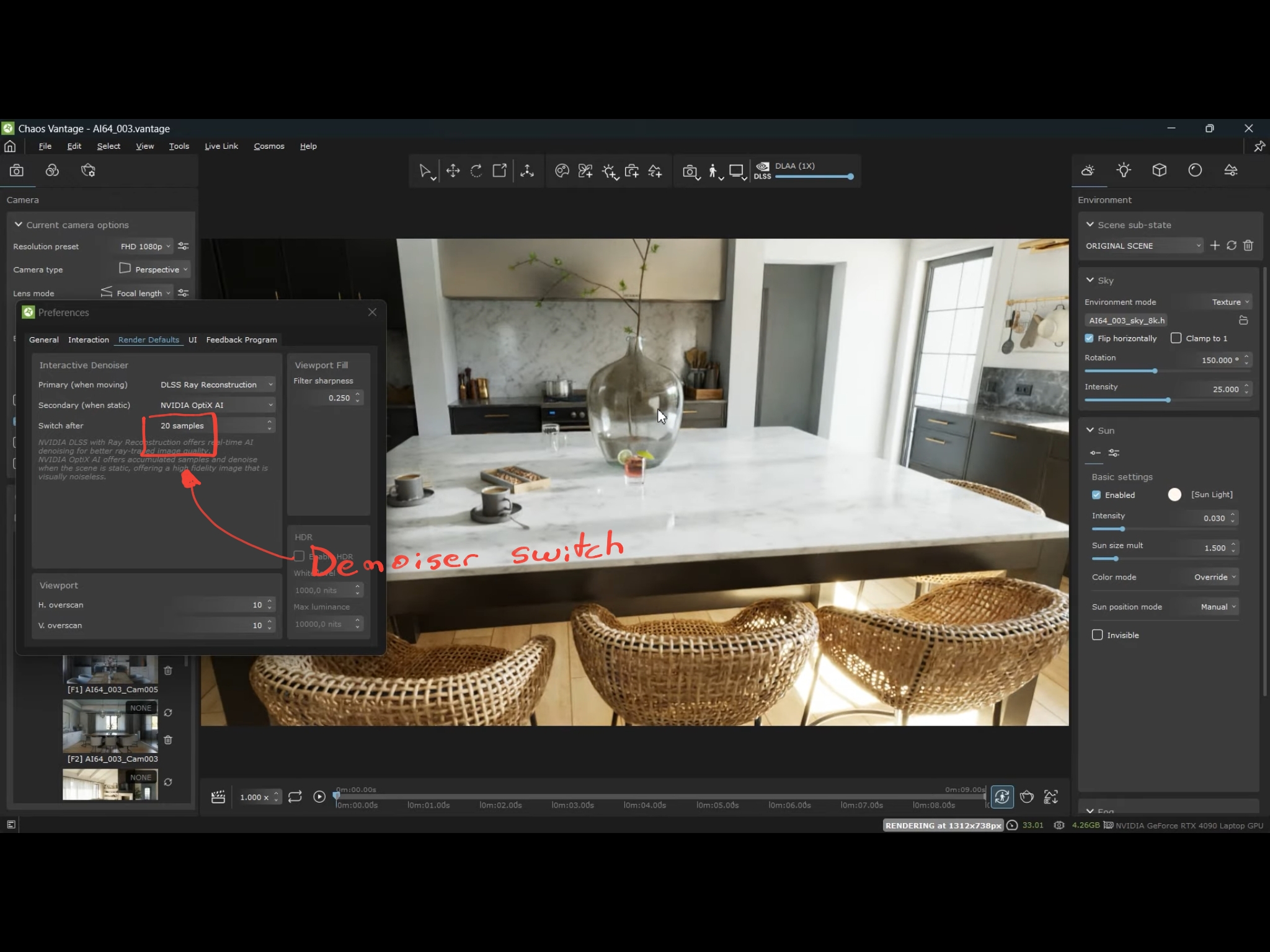 Tiempo de switch entre denoisers (lo que provoca el salto en la imagen luego de reiniciarse los pases tras mover la escena):