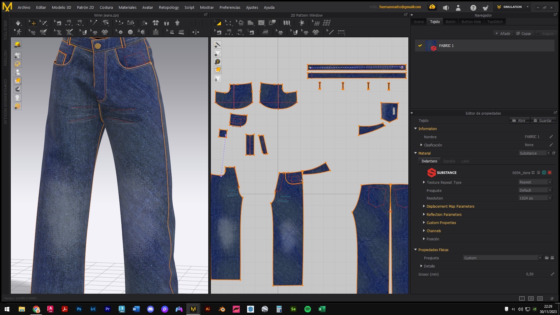 Buenas, trataré de resumirlo lo más brevemente posible. Adquirí un modelo 3D en Marvelous de unos jeans que venía por defecto con una textura de Substance. Al intentar reemplazarla por un material PBR, algunos detalles, como los desgastes en la zona de la rodilla, siguen apareciendo, incluso después de borrar la textura por defecto y colocar mi mapa de normales y mi base de color. ¿Alguien sabe cómo eliminar esos estampados? Gracias de antemano.