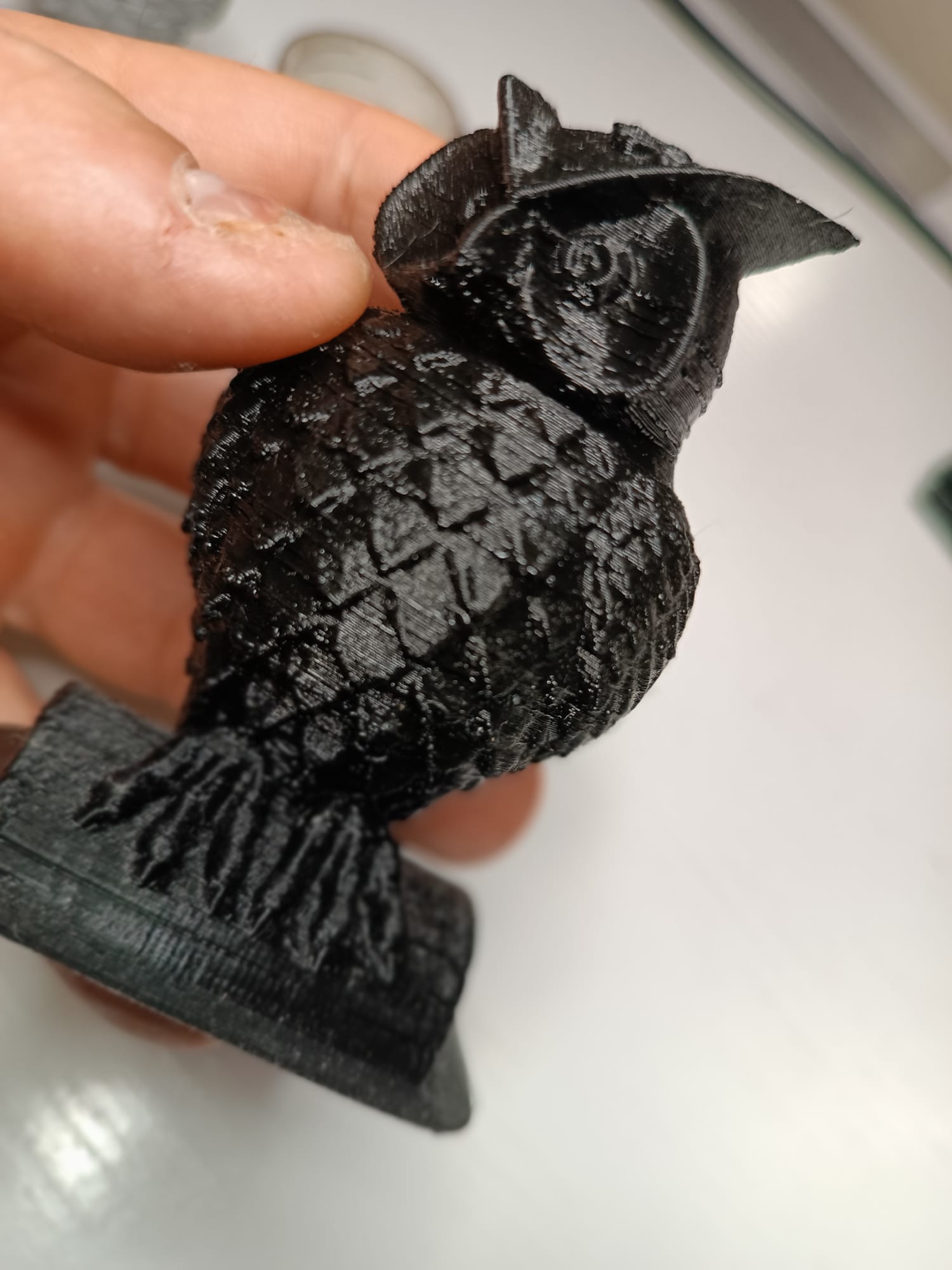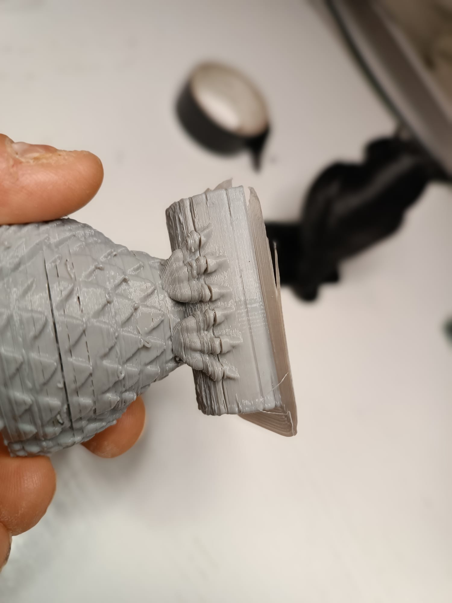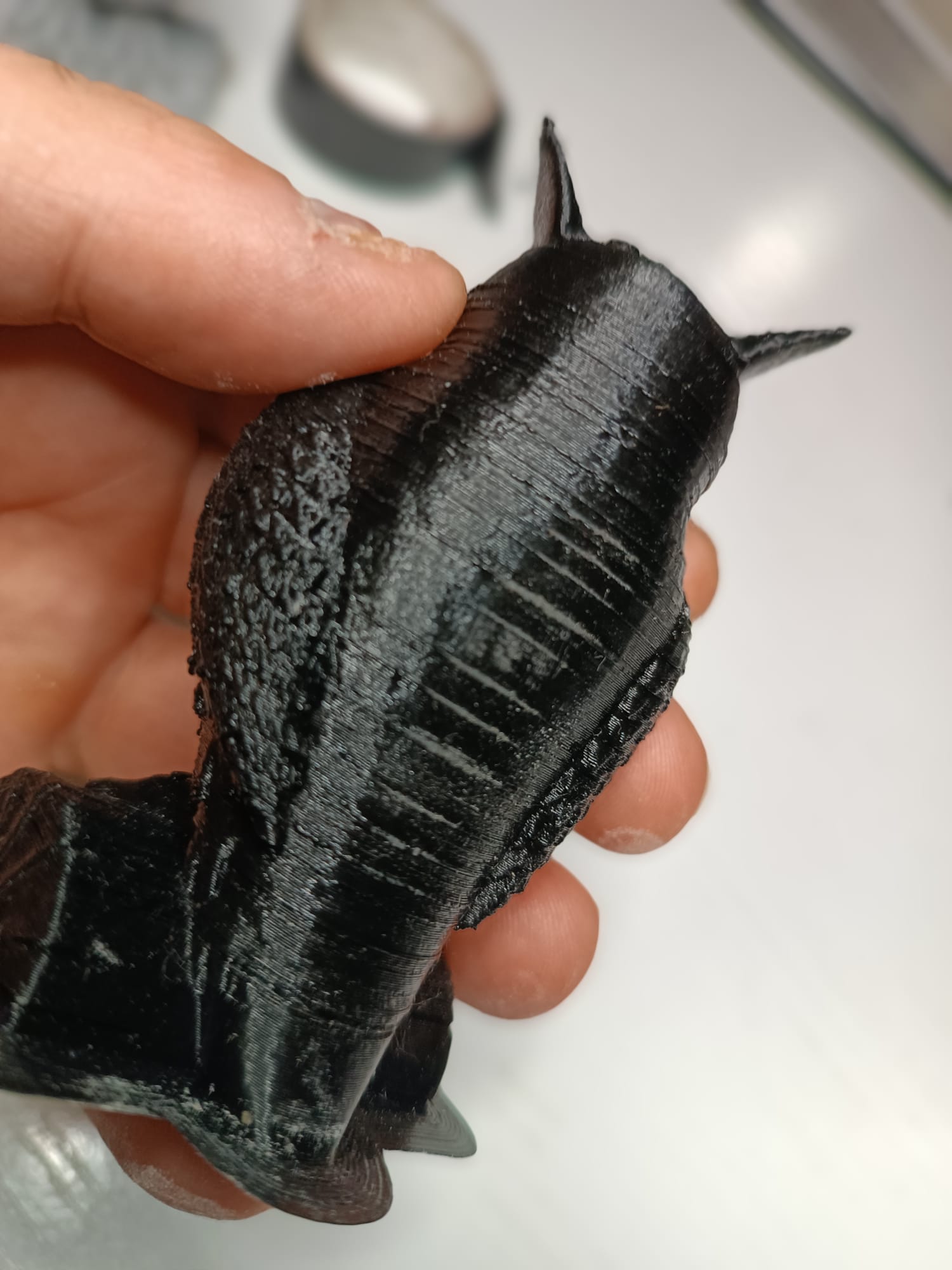 Buenos días. He desmontado el arco de la impresora y lo he instalado de nuevo. También he tratado de nivelar la placa mediante las ruedas excéntricas (intuitivamente, porque no he encontrado ningún sitio donde explique cómo ajustar las 6 ruedas, 4 de ellas excéntricas, de la ANYCUBIC KOBRA PLUS) y, por último, he bajado la temperatura a 200, como me aconsejaste. Como puedes ver en la siguiente foto, creo que la impresión ha mejorado.