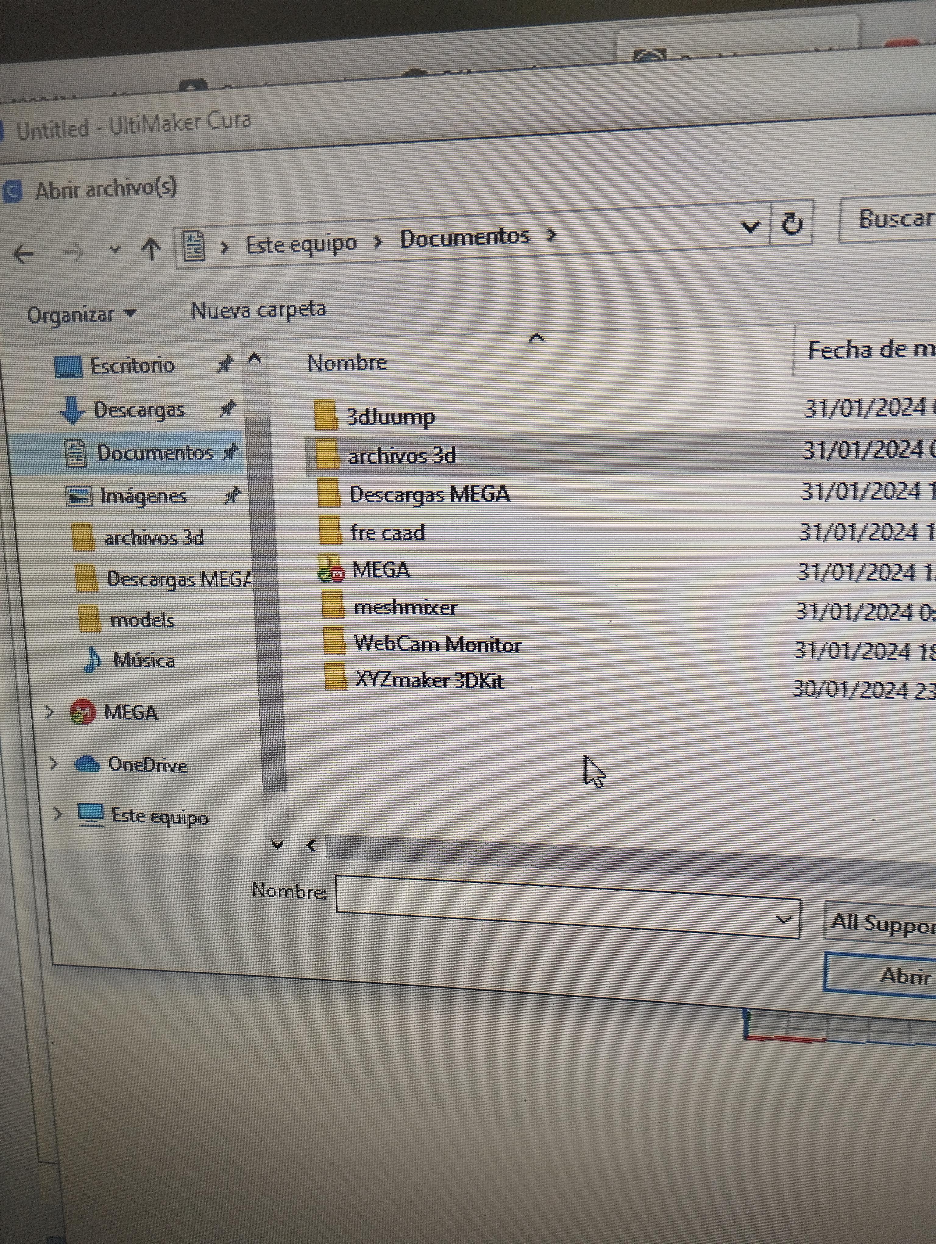 Intento abrir el archivo stl desde cura y no aparece nada para abrir en la ventana, pensaba que era un problema de cura, pero instale varios programas mas, y esta claro que el problema es del pc por que pasa lo mismo.