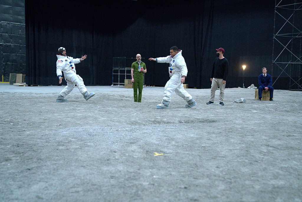 El enfoque fue cuidadosamente planificado para no desentonar con las imágenes históricas, utilizando meticulosamente las referencias visuales de los documentales sobre la carrera espacial, como el de Apollo 11, y otras películas recientes como First Man. Además, se realizaron ajustes de CG en detalles como los coches de la época, con el desafío adicional de crear autos nuevos de 1969 en CG debido a la disponibilidad limitada de vehículos auténticos.