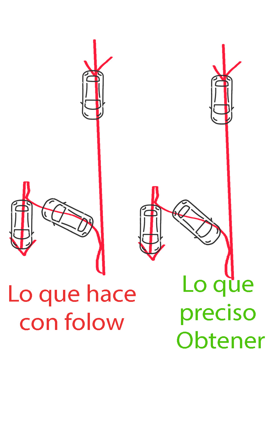 Ahora mueve el cursor de tiempo al fotograma donde el coche termina de retroceder. Vuelve a activar la opción Follow (esto creará otro keyframe).