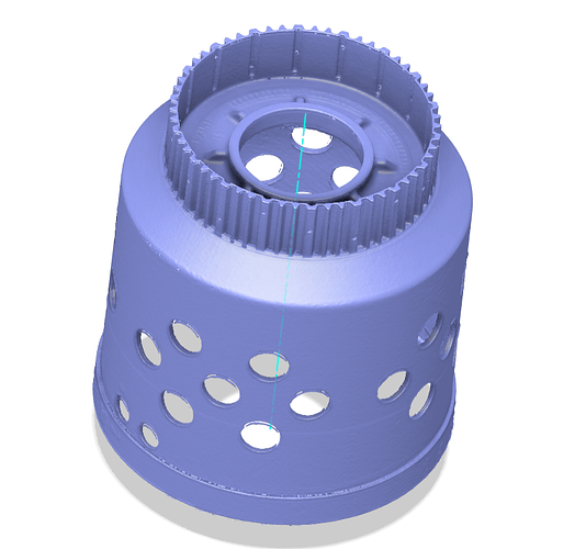 A continuación, tenemos una cesta de embrague de una caja de cambios ZF8HP50. Es una pieza de aleación fundida, mecanizada con una superficie altamente reflectante. Se sabe que esta pieza se daña con el tiempo y puede fallar, por lo que el plan es fabricar nuevas piezas a partir de una aleación maciza (billet).