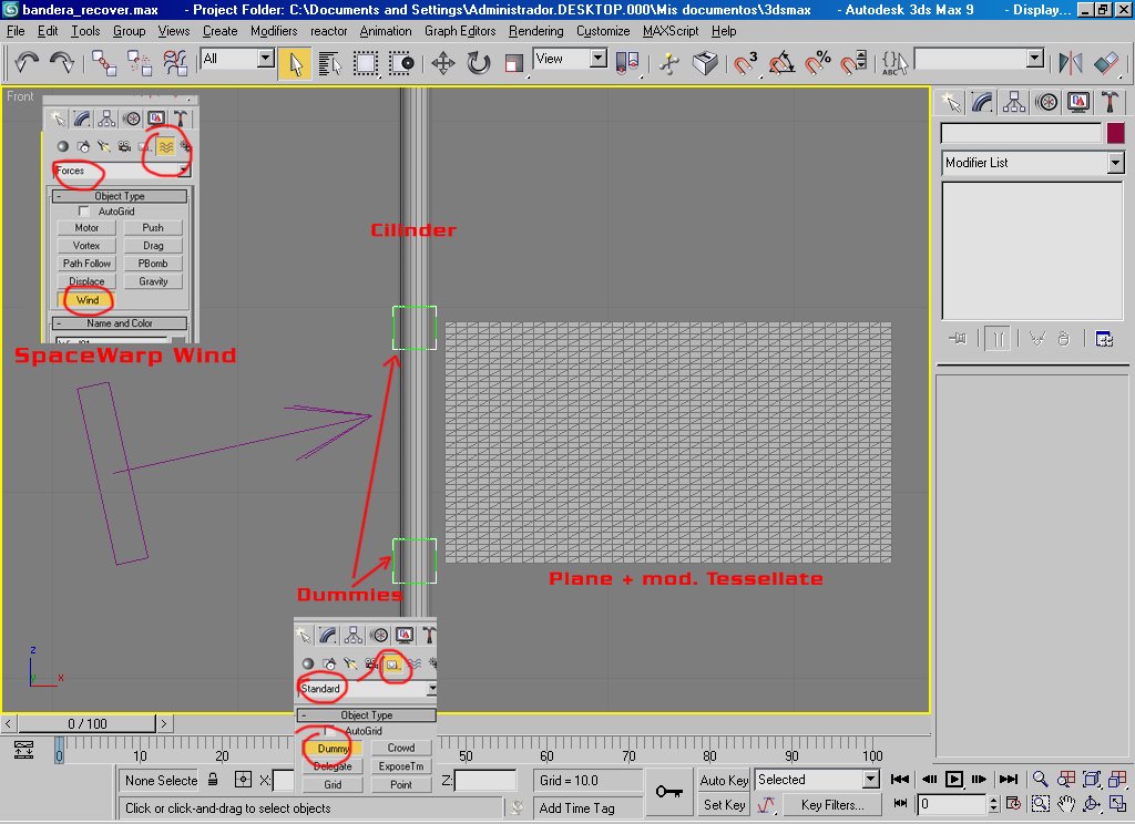 A ver, por lo visto usas 3ds Max Reactor, si presionas f1 y tecleas bandera o flag (español - Inglés) hay un tutorial de cómo hacer una bandera, no es Reactor, pero es bastante buena y simple, y en la sección de tutoriales de este foro, hay varios para hacer una bandera paso a paso, si sigues teniendo problemas publica y veremos que pasa, saludos.