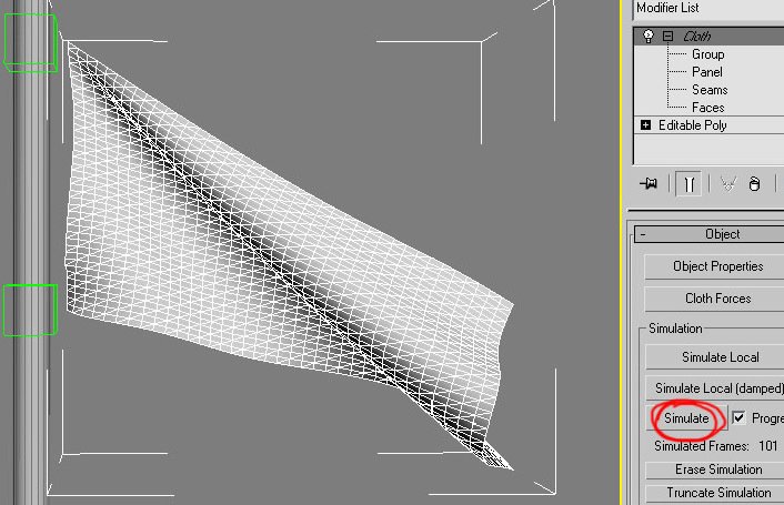El SimCloth, si no recuerdo mal, a nivel subobjeto, te permite seleccionar los vértices de la malla que luego serán asociados al objeto rígido, en este caso el asta de la bandera.