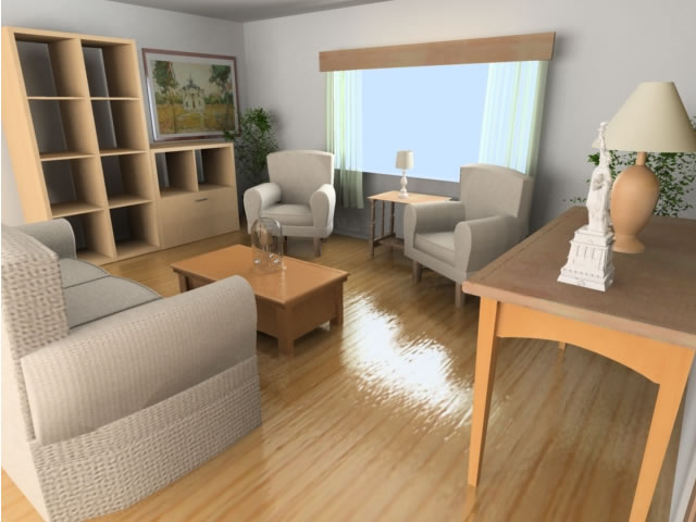 Hola. La escena que les pongo debajo tiene dos luces Vray una skylight portal detrás del sofá y otra que entra por la ventana (invisible), llevo varios días probando, pero no me acaba de convencer el resultado, pienso que el problema está en la luz Vray invisible de la ventana que la he configurado a mi entender porque en el tutorial de Dideje (al que le doy las gracias) no hay nada parecido a iluminar un interior con una luz Vray invisible, primero he hecho el mapa de fotones separados para tratar de equilibrarlos los más posible, en el de la luz skylight portal todo bien, pero cuando cálculo el de la luz invisible me pintaba toda la escena de naranja así que, le baje el multiplicador de los rebotes secundarios a 50 y todavía se me queda un poco pintado encima de las cortinas.