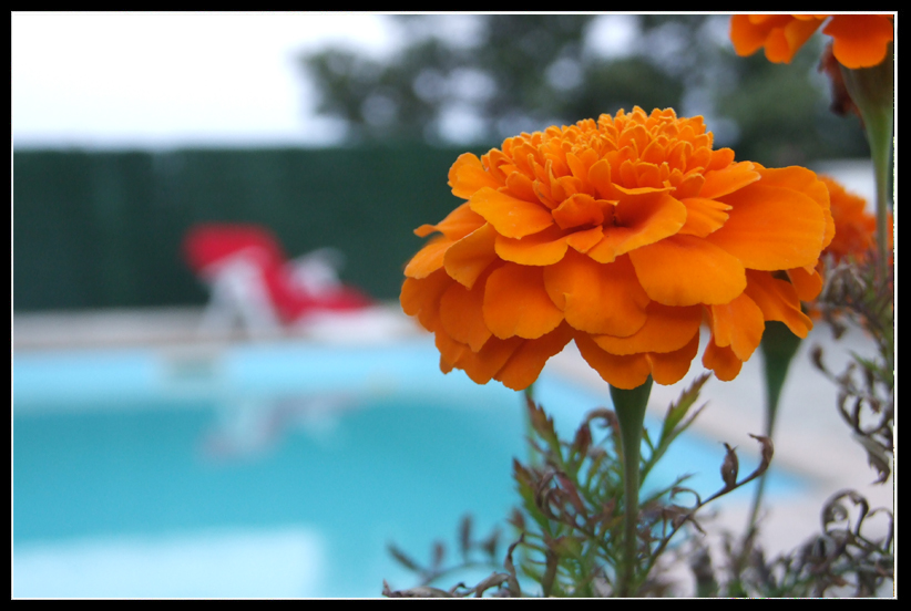 Litos46, muy chulos los colores de tus fotografías. Me gusta sobre todo la última, con la flor muy bien enfocada y dejando ver desenfocada la piscina al fondo.
