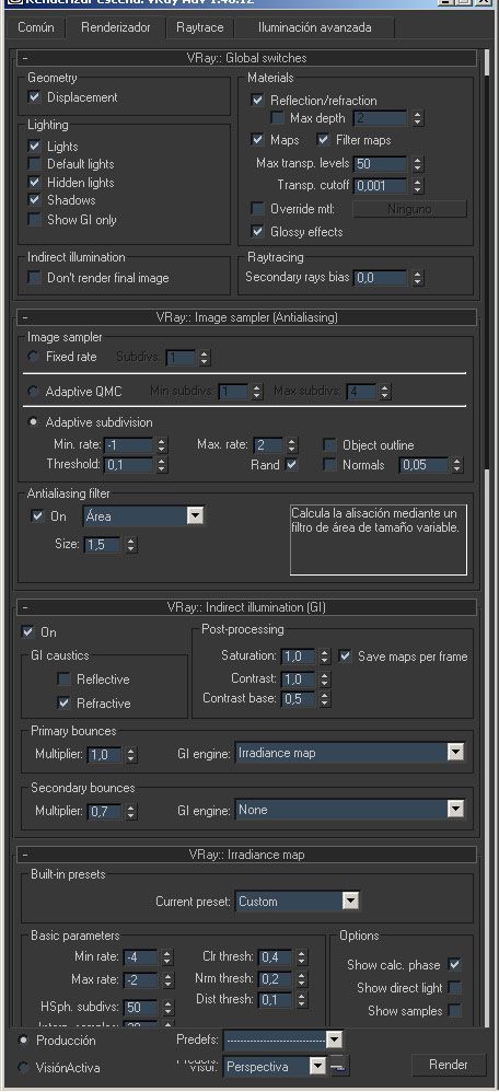 Probé con fotones y con los demás, pero nada. Los materiales son todos Vray, así que, no sé de qué se trata. Estoy tela de chungo.