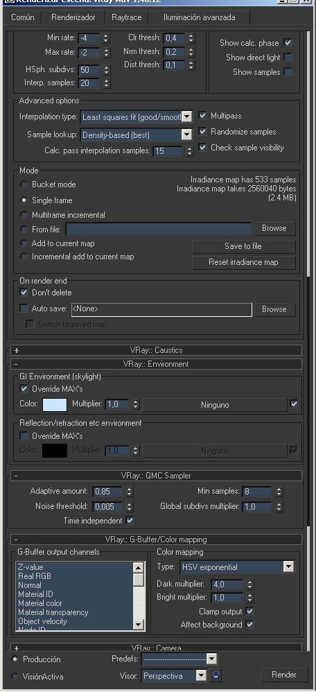 Así que me temo que es del nuevo tipo de Color Mapping y seguramente de la versión de Vray que me da fallo a causa de este Color Mapping. Muchas gracias a todos por la ayuda prestada y un saludo.