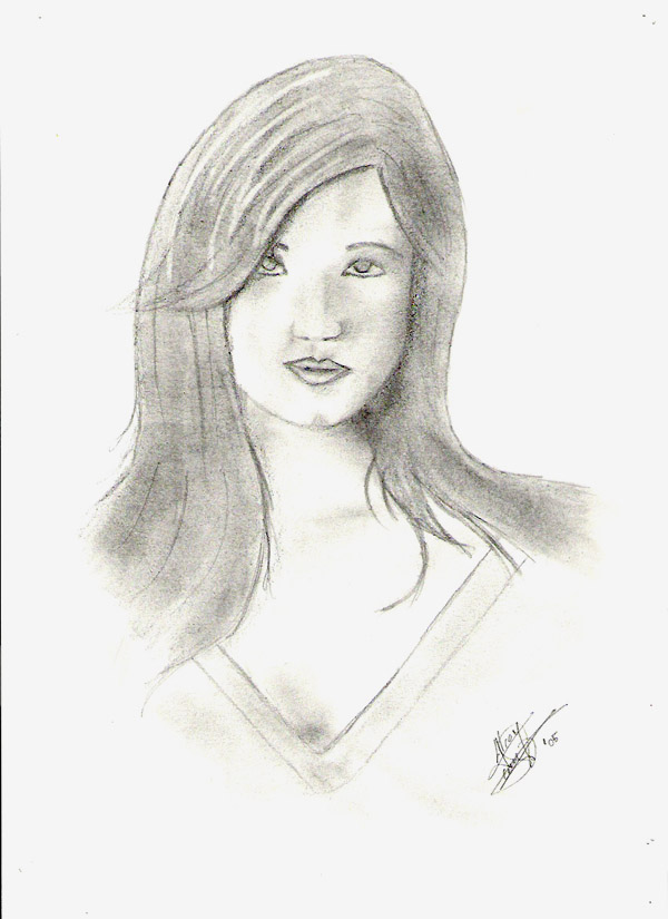 Hombre, no soy el más indicado para criticar y aconsejar en dibujo 2d, pero veo la imagen un poco plana (a veces pasa que al escanear o fotografiar se pierde gran parte del contraste real que tiene el papel, sobre todo los tonos claros, pero, en fin). No tengas miedo de hacer más oscuras las partes oscuras, veras que el resultado gana bastante. En cuanto a proporciones, veo algo raro en los ojos, o en la parte de la izquierda de la cara en general. No sé, algún master te dirá más. Tal vez sea que el hoyuelo de la barbilla te ha quedado poco centrado o algo así.