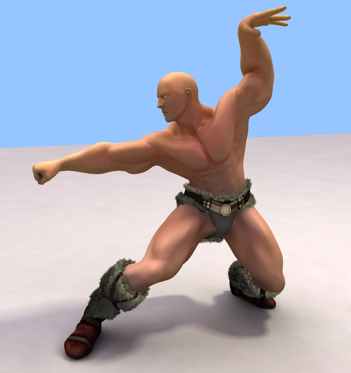 Lo cierto es que este personaje está modelado pensando en una animación, por eso cierta partes pueden pareceros algo redondas, tiene su explicación en el modelo de baja, que es el que lleva el skin. La animación aún es una baga idea sin trabajar. Incluso el modelo prácticamente me lo estoy modelando al antojo, sin previo diseño. Solo tenía en mente una idea de algo mezcla entre Conan y un burro musculoso. Lo toco una media de una vez por semana, y suelo practicar con diferentes movidas, pelo, telas, músculos, skin, materiales y cosas por el estilo, así me sirve como practica. Gracias a todos por vuestras críticas y elogios.
