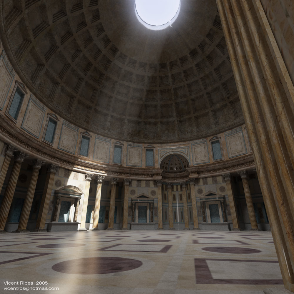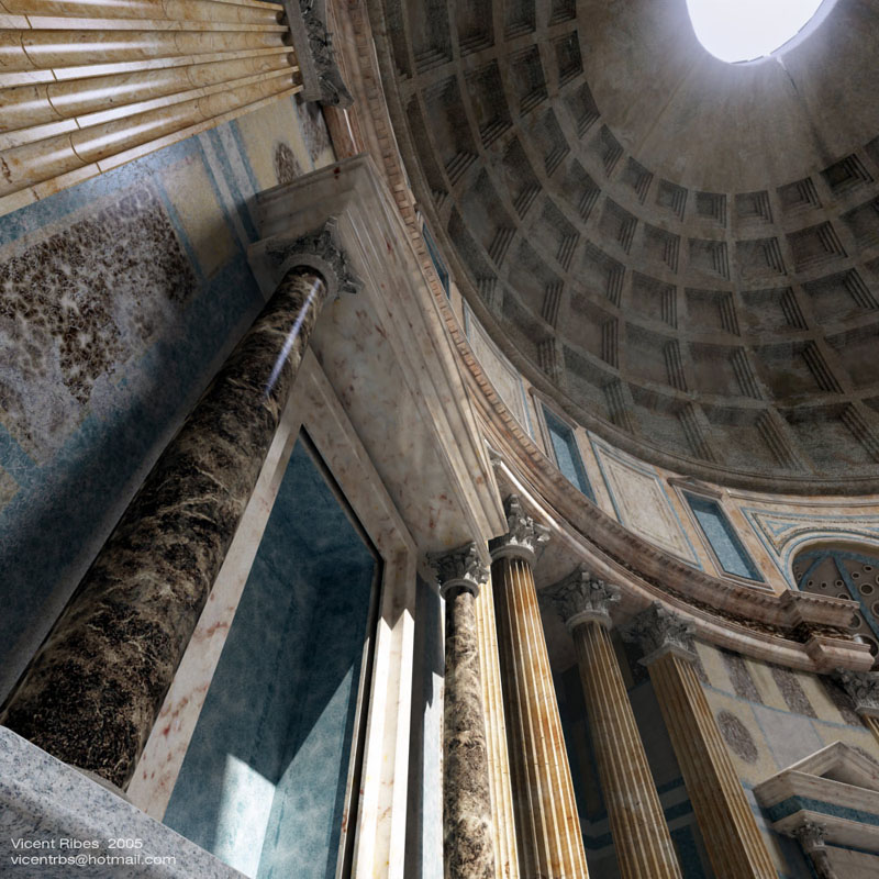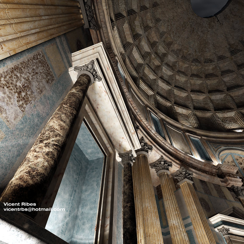 Hola. Esta es una actualización de una escena que representra remotamente al panteón de adriáno. A diferencia del monitor en que rendericé, viéndolo con este monitor me parecen un poco oscuras, si hace falta ajustar los niveles y alguien me lo comenta se lo agradecería.