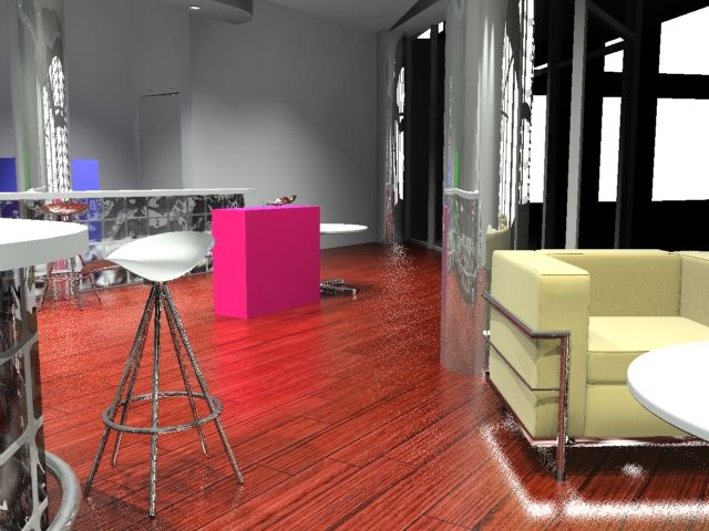 Buenas compañeros. Llevo días buscando y me estoy volviendo loco cómo hacer un suelo de tarima flotante mate con su correspondiente reflexión muy, muy difusa (desenfocada), algo parecido a lo que os adjunto, que lo he visto por ahí.