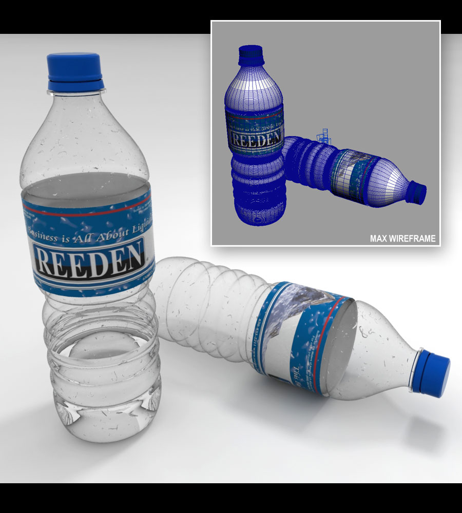 1.- El plástico no es muy real, sobre todo en la botella tumbada, parece que las normales estén volteadas, no se marcan correctamente las curvas.