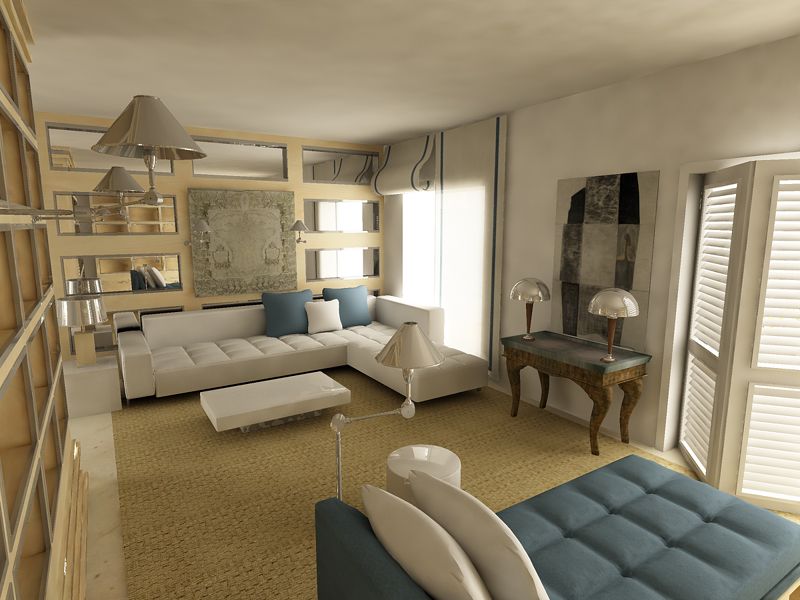 Creo que en general está bien, quizás tengas un problema de escalas con las patas de la mesa la puerta y quizás las lámparas. Me gusta.