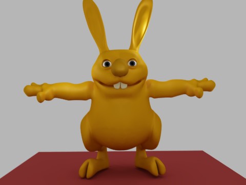 No se ve mal. Al verlo me he acordado de algo que te quería preguntar cuando vi el rigging. Los brazos los tienes configurados de tal forma que la flexión se produce siempre hacia arriba. Supongo que será para simular las patas de un conejo real, pero se ve un poco raro, sobre todo porque al poner al conejo a 2 patas lo estas humanizando y entonces choca con la postura habitual de una persona normal.