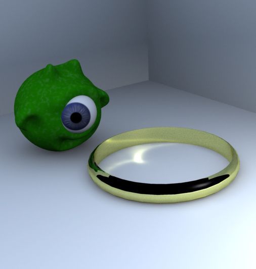 Bueno como veo que ha funcionado el tema de la imagen, os pongo un detalle de uno de los personajes. Es una prueba que hice con las cáusticas de Brazil, el resultado del reflejo del anillo, me sorprendió gratamente.