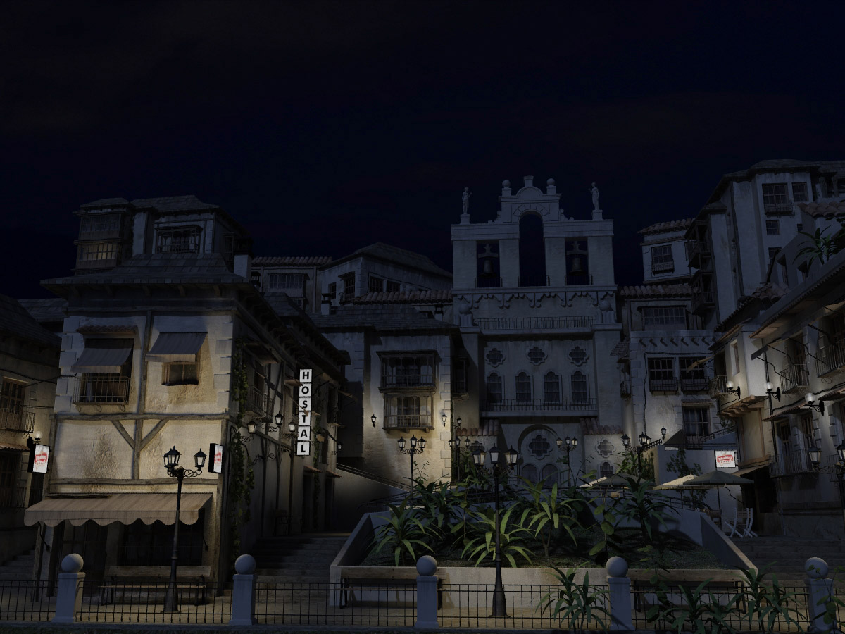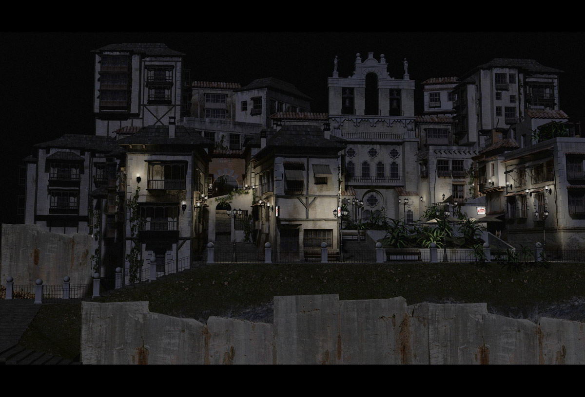Realmente gana mucho más con luz diurna. Ya que te has currado el pueblecito, que se vea. Normalmente las imágenes nocturnas, se falsean multiplicando la luz de la luna y la luz ambiental, de forma que se vea algo.
