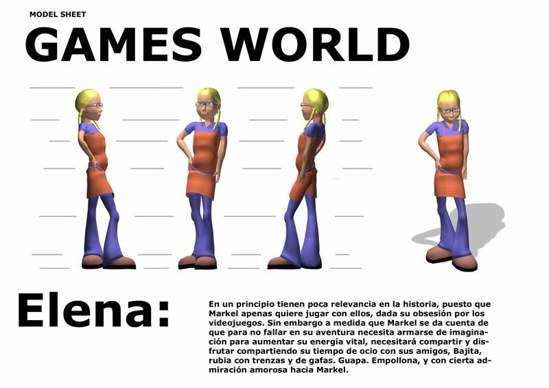 Ya, ya me di cuenta, pero no lo voy a arreglar, no sale mucho la niña, así que, así se va a quedar, es el problema qué tengo al hacer las cosas solo, no puedes estar mirando demasiado para atrás, solo si queda excesivamente horrible. Si no, no acabo en vida. Llevar lo que se dice llevar casi un año, pero entre ponte y estate quieto los diseños el guión y la vaina empecé + o - en julio, y acabe de hacer cabezas hasta los huevos ya que son 160 cabezas + o, ahora estoy con los escenarios haciendo el mundo de los dados, que espero este acabado en breve, luego solo me quedaría, la habitación que está casi acabada, la cocina de la casa, la casa exteriores, calle, clase de la escuela, patio y antesala de games world, casi nada en dos meses acabado, de modelado, bueno igual uno más vale, y luego layout y story que lo hago todo a la vez para hacer la Leika, sacar tiempos, y a animar, montaje, como ves no me queda casi nada espero que en un año lo tenga más o menos acabado, lo del render no sé cómo lo hará había pensado en voluntariado unas horas de máquina y un poco de friediscos a cambio de salir en los créditos, pero bueno son cosas que todavía no me preocupan, sobre lo que es. Yo lo llamo corto-piloto-serie, ya que me echo a la piscina, que sea grande la ostia. Y ahora ya me podéis tildar de harto, loco, y todo lo que se os ocurra porque tendrás razón.