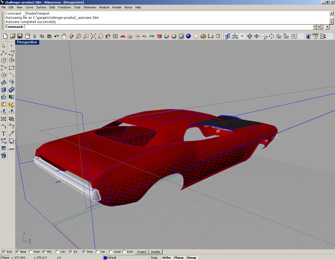 Rhino es muy bueno, si. Me gusta tu coche, va bien. Quizá modificaría un poco la parte de los faros, no conozco el carro.
