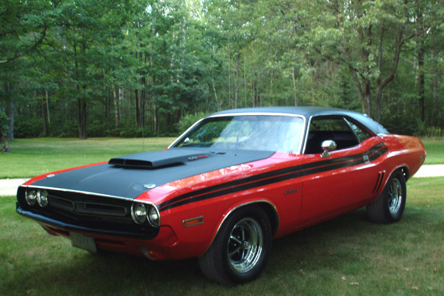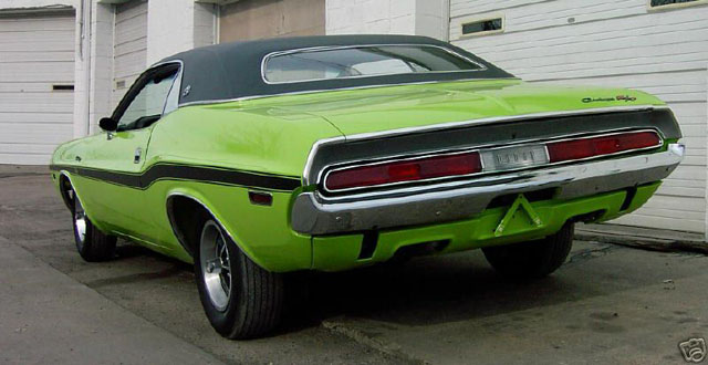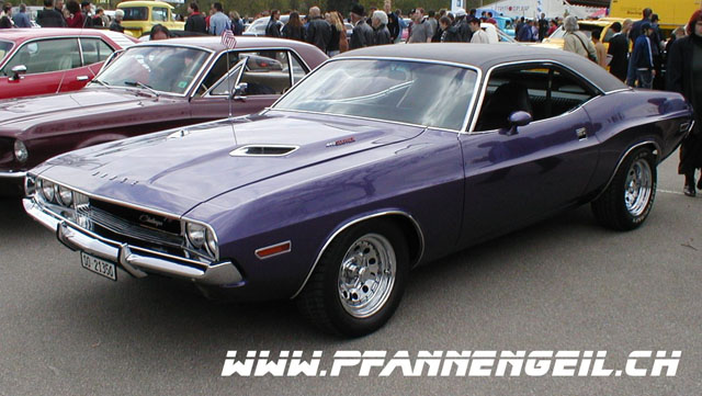Se trata de un mítico dodge Challenger r/t de 1970, una de las mayores bestias con 4 ruedas que han salido al mercado EU. Deciros que soy un fanático de estos bichos, ya que tengo un dodge charger r/t (1971 el del avatar) y un Ford Mustang mach1 (1972).
