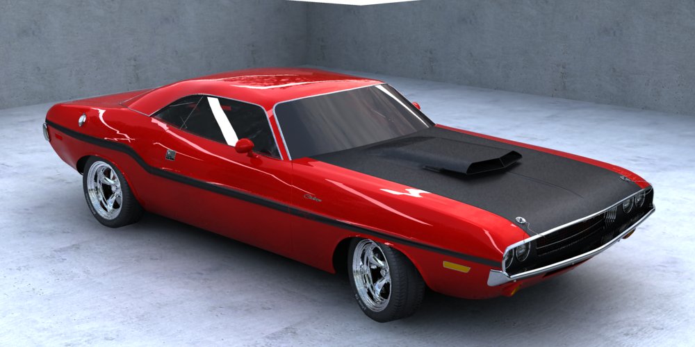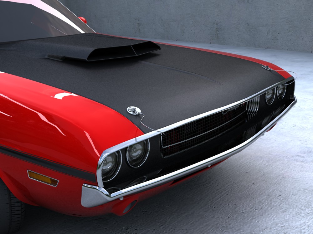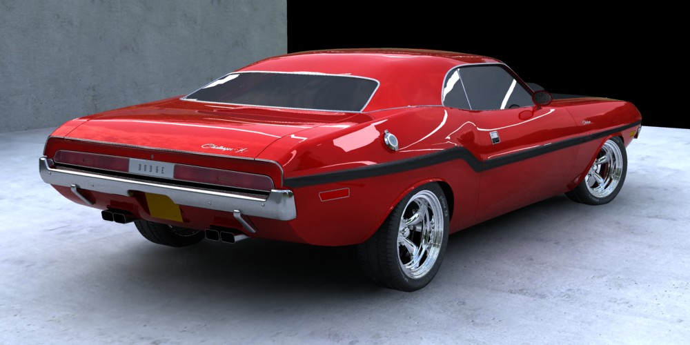 Bueno, la cosa se va acercando más a su fin, aunque aún me falta mucho trabajo, más o menos un 25% del total, quiero que las imágenes finales del coche estén ubicadas en un garaje típico americano que aún he de modelar.