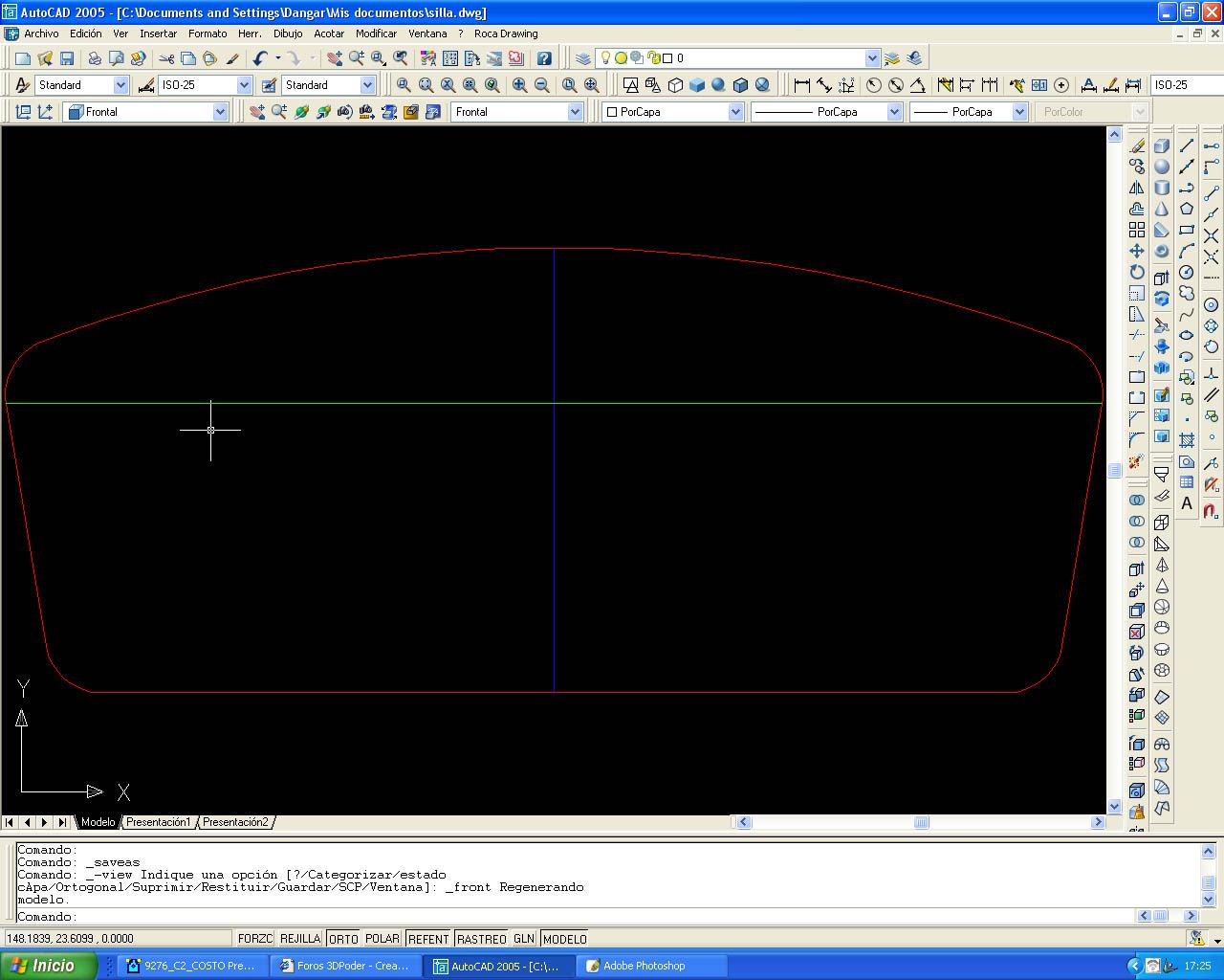 Hola a todos, espero explicarme correctamente acerca de una duda que me ha surgido. Quiero realizar una silla y el asiento de la misma quiero que tenga una sección con la forma del dibujo 1, el caso es que hace mucho tiempo recuerdo que con el 3dstudio había una orden la cual por medio de 2 secciones te montaba el objeto en 3d.