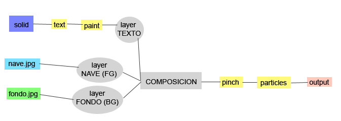 Vaya, he leído de nuevo y el gráfico está mal (creo), porque el efecto de Pinch y particles sólo quieres aplicar sobre el fondo, ¿no? Siendo así, éste es el que vale (algo chapucero, pero tengo que pirar y creo que se entiende :p).