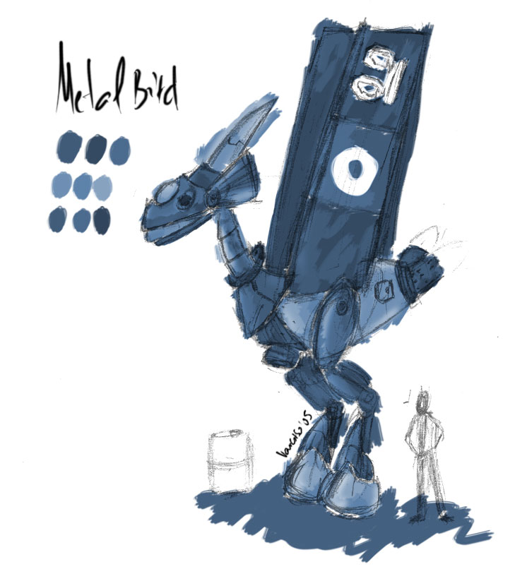 Pues nada, es un robot que estoy haciendo, una especie de pájaro de metal (ver boceto), la idea era haberlo presentado al concurso de 3dyanimación, pero hasta hace unos días no me he puesto a modelar u.
