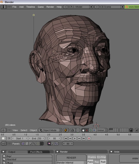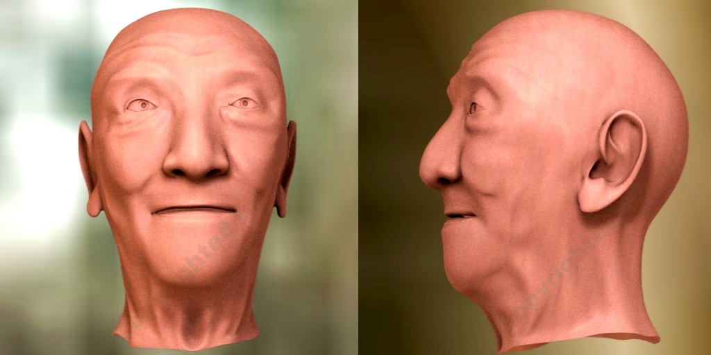 Os dejo una captura del interfaz de Blender que suelo usar para mostrar el parecido con la fotografía usada como referencia y una imagen de muestra simplemente con AO.