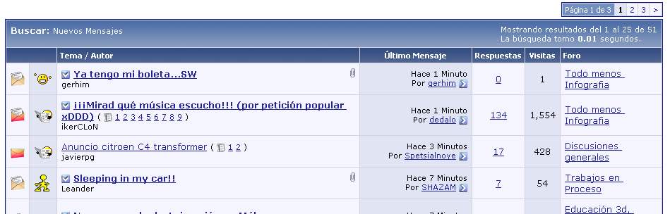 Pincha arriba en nuevos mensajes, y al lado de los títulos de los mensajes en los que hayas intervenido, veras este icono: