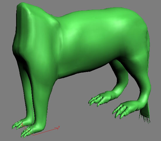 Hola a todos. Estoy haciendo este animal, una manticora, según un boceto que encontré en la página de wizards, com. Para hacer el cuerpo estoy usando una fotografía de un leopardo.