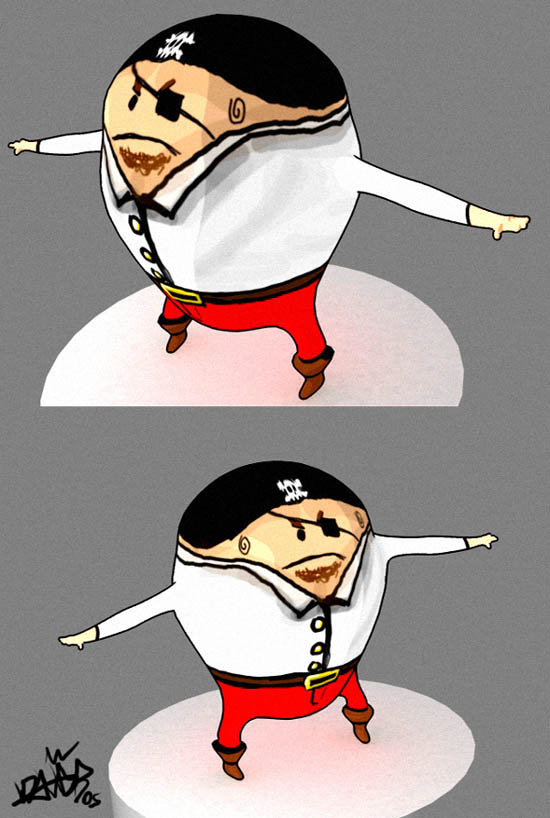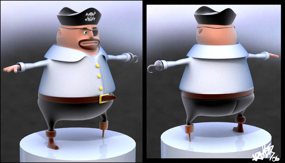 Saludos. Tengo que diseñar unos personajes piratas para un videojuego share en 2d o 3d prerenderizado y bueno, después de unos cuantos conceptos a mano me puse a modelar unas pruebas, de momento no he encontrado la estética que me gusta, a si que estos dos que os coloco serán desechados, a ver si me viene la inspiración y hago algo chulo, de momento os coloco estos por si me dais alguna idea, sugerencia, voy a hacer algunos bocetos con algún pirata más peludo, con barba larga y todo eso a ver si me convencen más. Tengo libertad para crear toda la estética del juego (dentro de las limitaciones que pone el cliente y el presupuesto), a si que ha ver si el próximo que modelo ya es el definitivo.