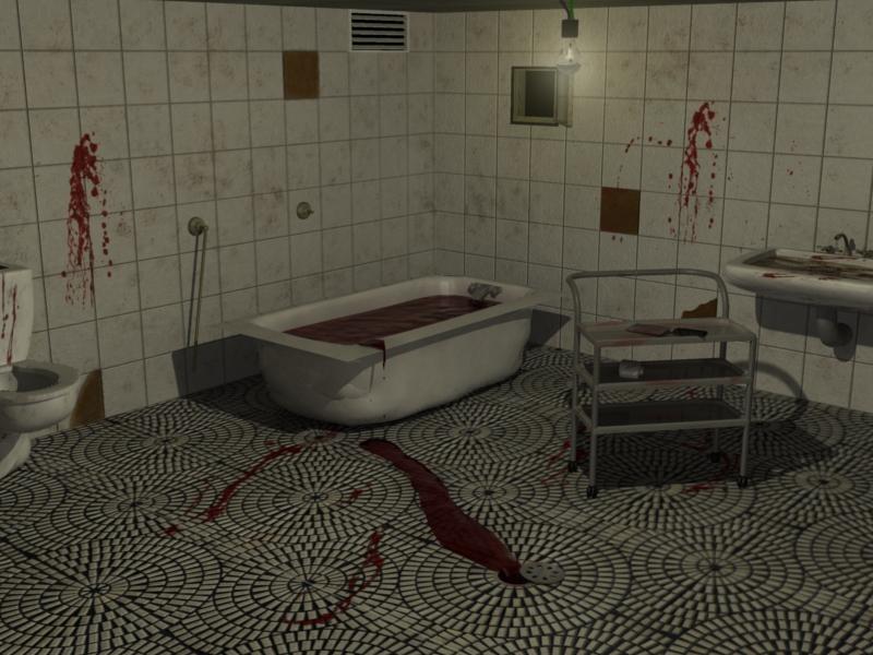 Está bastante bien la verdad, pero en mí modesta opinión no habría hecho que las salpicaduras en las paredes fuesen tan similares (a simple vista parece que la mancha de la izquierda es la misma que la de la derecha, pero con algo más de sangre) esos detalles sin importancia hacen que se note que es una imagen virtual y no una real, pero hay que reconocer que el trabajo es muy bueno a la par que macabro. Un saludo.