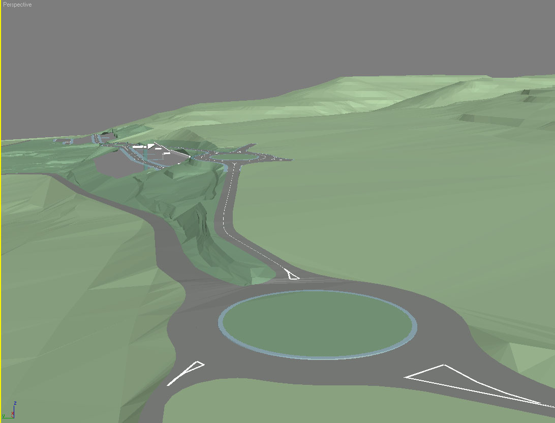 Hola, me atrevo a responderte a esta cuestión y te digo como lo hago yo en el trabajo. En AutoCAD, dibujo un longitudinal de la calle con su rasante y la extruyo (se dice así), al un tamaño proporcional al ancho de la calle, y esto sólido, lo importo al max, allí lo que hago es escalarlo y moverlo al lugar adecuando.