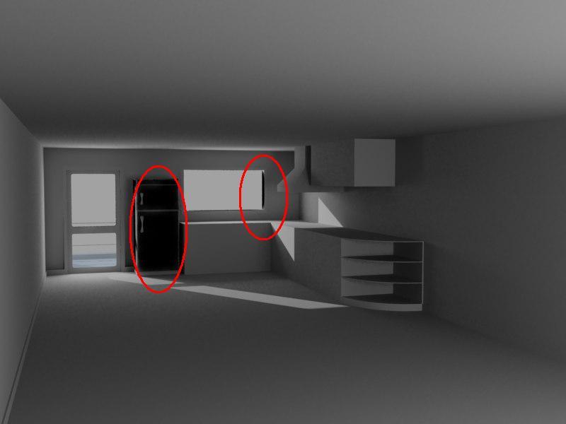 Vaya, miraré lo de los artefactos esos, a ver si encuentro algo y también probaré el tema de los fotones, porque ya he probado con el Light Cache, y el artefacto de la ventana si desaparece y el de la nevera aún sigue, pero con una menor intensidad, voy a ver si con los fotones lo solucionó directamente.