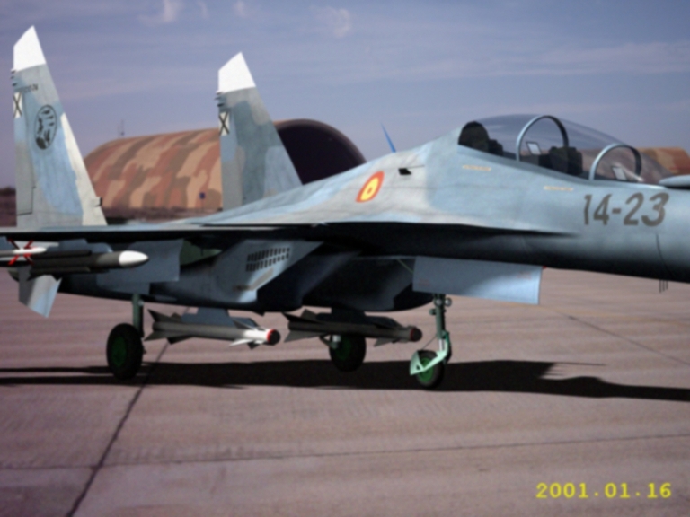 E intentar que cuele por auténtica la imagen, esa es la cuestión. Tuve que ir a la base de los llanos porque no hay fotografías disponibles por ahí, y aproveche el día de puertas abiertas para hacerle una fotografía a 20 m2 cuadrados vacíos de la pista (cosa que mucha gente me miraba como diciendo, que hace este espabilados si no hay ningún avión). El caso que la idea es que quiero integrar el fabuloso su-30 de Mike Pavlov en la fotografía y estos son mis intentos, si me podéis ayudar a mejorar el intento se agradecerá. Lo estoy haciendo con 3ds Max 3.1 (todavía) y coloco también una imagen, del mismo día, del Eurofighter Typhoon español, para tratar de comparar el resultado.