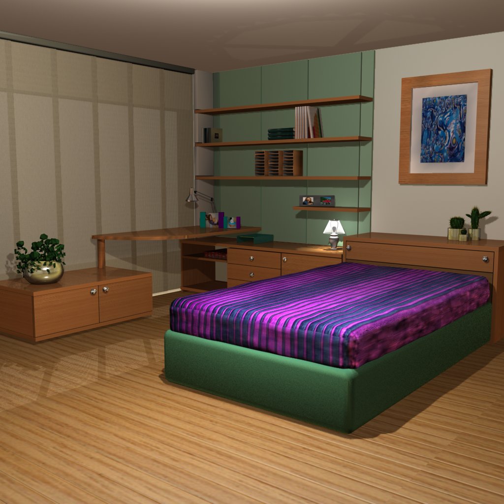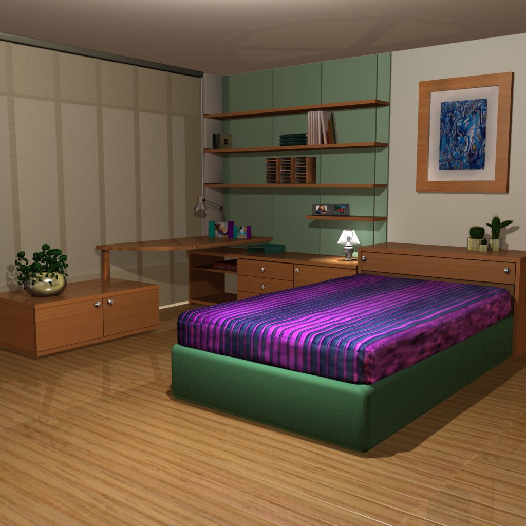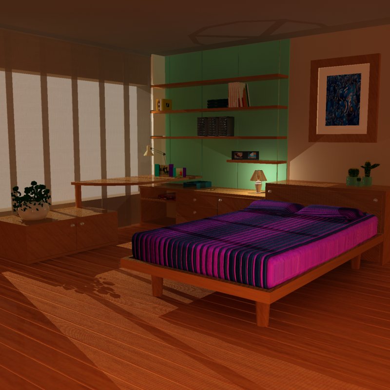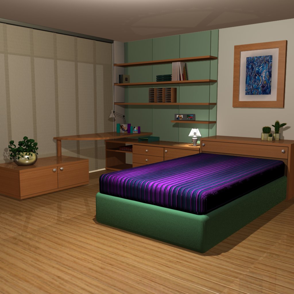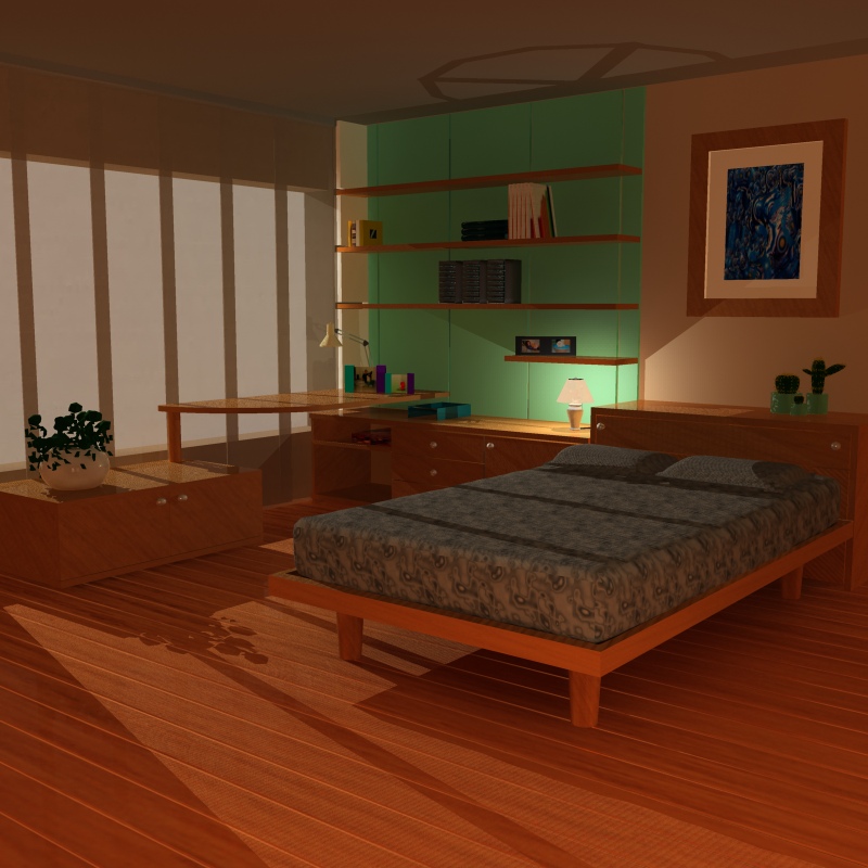 Gracias kitune, ya le baje el brillo y le agregue algo de reflexión al piso, no le quise agregar un Bump por que quiero que se vea muy bien acabado, pero igual es válido tu plantiamiento. Al colchón no le baje el ruido por que ya lo había combertido en malla poligonal editable, pero tienes razón.