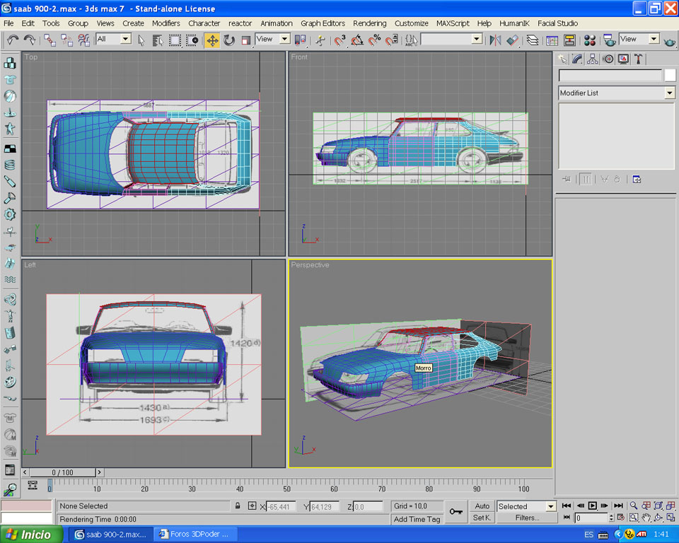 Vaya coños, tío, quien te enseño a cortar los blueprints así de feo? Bueno para lo que coinciden en general alcanza y sobra, con respecto al modelado parece que usamos la misma técnica, al menos para el arranke, espero seguir viendo avances y si es tu primer auto lo veo bastante bien, bien feo como el auto ese. (pero lo que importa es cómo queda terminado aclaro).