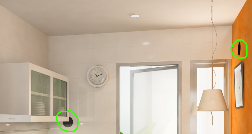 3 luces Vray en ventanas y puertas respectivas, con 2000 Diffuse subdivisiones en Vray System cada una.