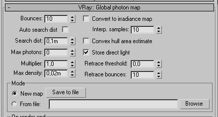 Hola render 3d. Yo te diría, que mirases el sistema de unidades. A ver como lo tienes. Luego lo probaría todo en Photones, con los parámetros de la imagen adjunta, y que fueras tocando, de forma proporcional, los valores del search Dist, y del 3ds Max density, de forma gradual. Si te salen lunares muy fuertes, aumentar los parámetros, de lo contrario, disminuirlos. Pero siempre en proporción. Una vez salga más o menos el tono de lo que buscas, cambiar a: