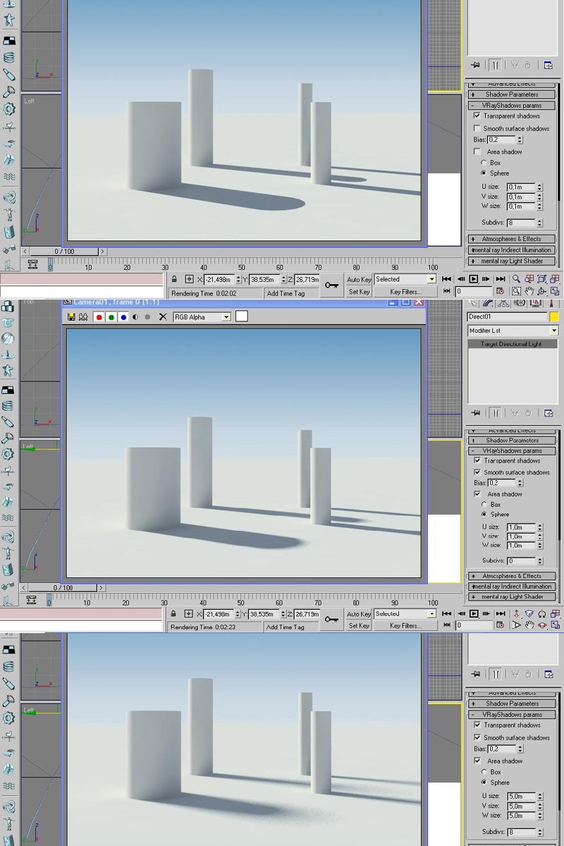 Quizás ya se halla respondido esta duda, pero no lo he visto, así que, va. Tengo una escena interior con una target, y dos vraylights, la target esta sin anrea shadows en los parámetros de sombras Vray, así tengo limites bien definidos de sombra, pero demasiado, ¿cómo puedo usar el área shadow y tener limites algo difussos?