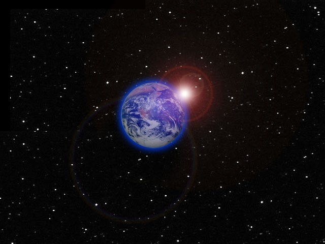 Hay una opción en geometría crear que se llama esfera y tienes dos opciones, la normal y la geosfera, eliges el sitio donde ponerla y el diámetro y el suavizado. Luego te vas al editor de materiales eliges un azul en el Diffuse le das un poco de brillo y lo asignas a la esfera.