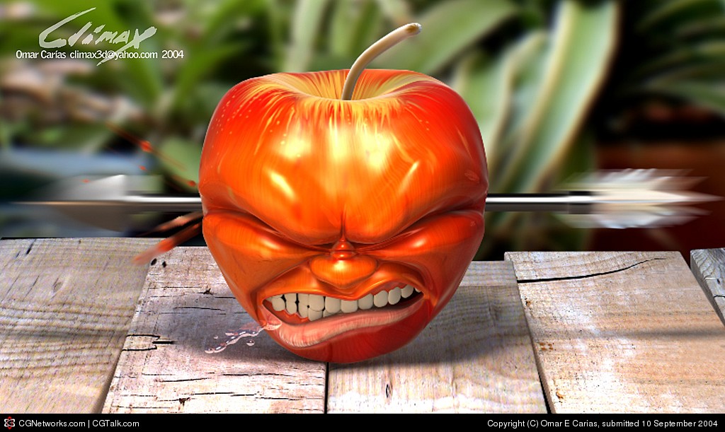 Gracias por las sugerencias, la verdad es que, acabo de empezar con esto del 3d y no tengo demasiada idea. A ver si voy mejorando y la manzana asesina cobra vida, no sé cuál será su ataque especial.